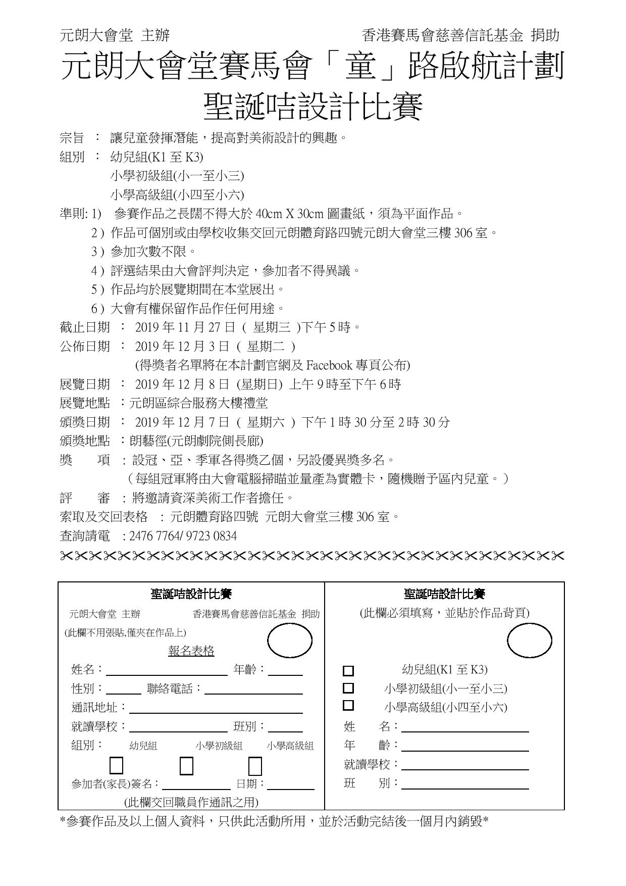 元化的服務。幸得香港賽馬會慈善信託基金慷慨捐助,「元朗大會堂賽馬會『童』路啟航計劃」於二零一九年二月正